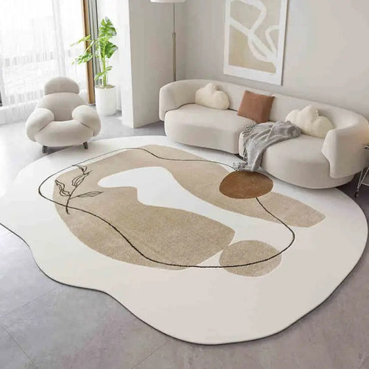Modern Abstract Hand Tufted Rug – Irregular Shape Beige Wool Area Rug, Minimalist Scandinavian Carpet, Contemporary Living Room & Bedroom Floor Rug