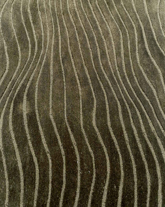 Modern Abstract Hand Tufted Rug – Olive Green Wavy Lines Wool Rug, Contemporary Area Rug for Living Room, Minimalist Designer Carpet