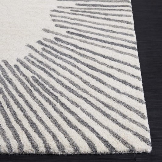 Modern White and Gray Sunburst Area Rug | Hand-Tufted Contemporary Carpet for Living Room, Bedroom & Office Décor