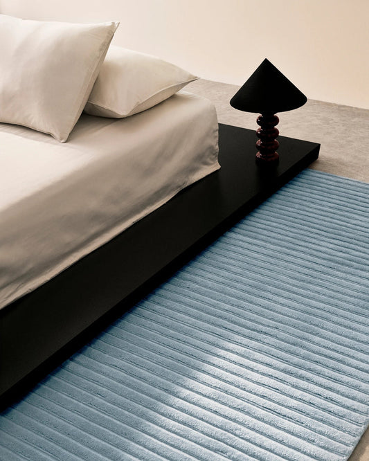 Handmade Light Blue Striped Modern Area Rug – Luxury Wool Carpet for Living Room, Bedroom & Contemporary Home Décor