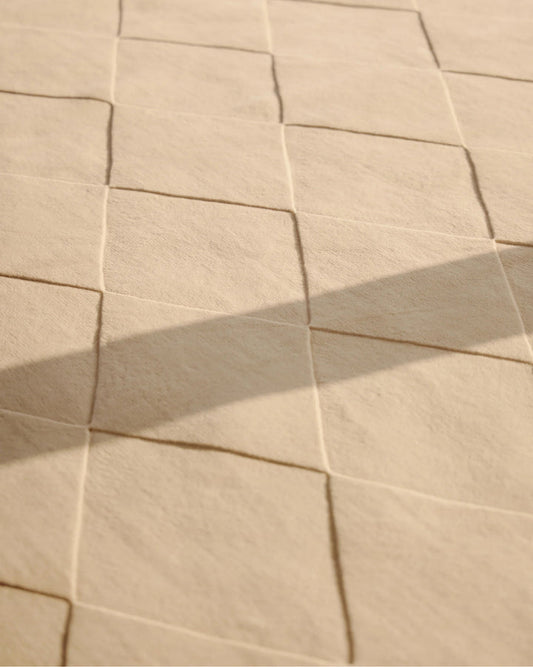 Luxury Hand-Tufted Ivory Diamond Pattern Rug | Modern Minimalist Geometric Carpet for Living Room, Bedroom & Office Decor