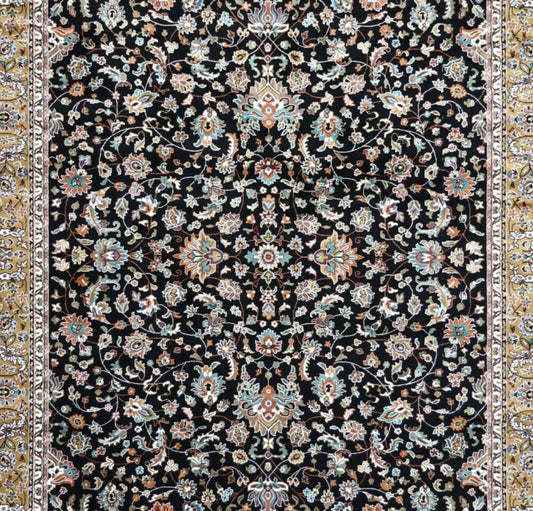 Luxury Persian Silk Rug – Black Multicolor Patchwork Oriental Carpet, Fine Traditional Design, Elegant Home Decor