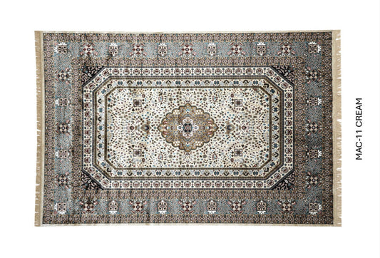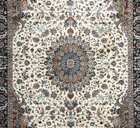 Luxury Persian Silk Rug in Cream – Elegant Medallion Oriental Carpet for Living Room