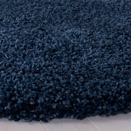 Handcrafted Super Soft Microfiber Shaggy Navy Blue Plain Round Carpet