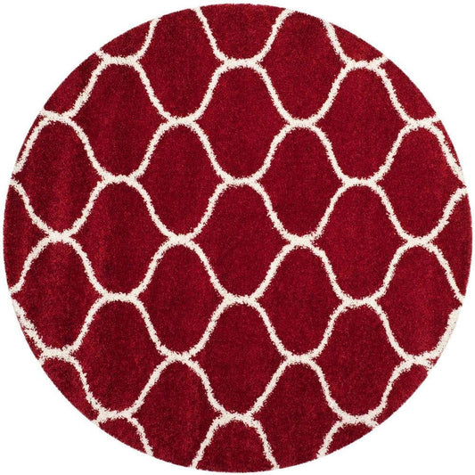 Handcrafted Super Soft Microfiber Shaggy Red Ivory Trellis Round Carpet