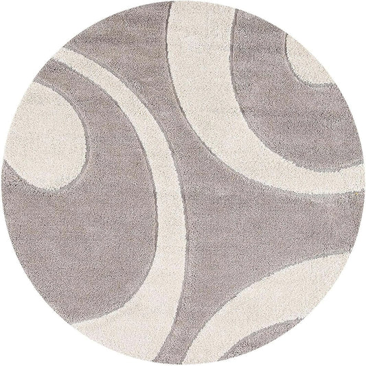 Handcrafted Super Soft Microfiber Shaggy Cream Beige Wave Round Carpet