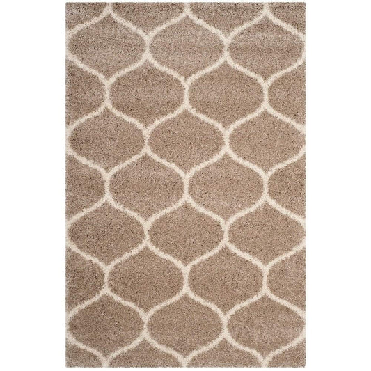 Handcrafted Super Soft Microfiber Shaggy Beige Ivory Cross Mixture Shape Carpet