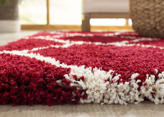 Handcrafted Super Soft Micro Shaggy Red Ivory Carpet