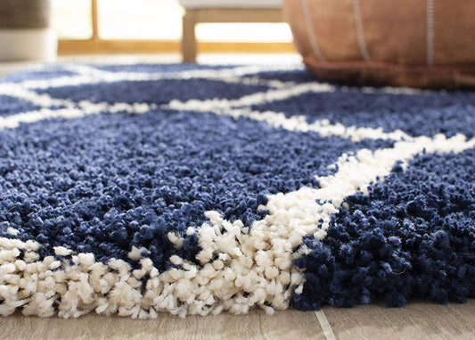 Handcrafted Super Soft Micro Shaggy Navy Blue and Ivory Carpet
