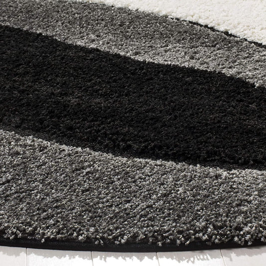 Handcrafted Super Soft Microfiber Shaggy Black Silver Ivory Wave Shape Carpet