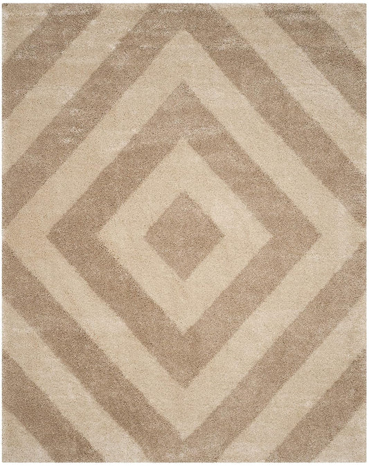Handcrafted Super Soft Microfiber Shaggy Beige Ivory Rhombus Shape Carpet